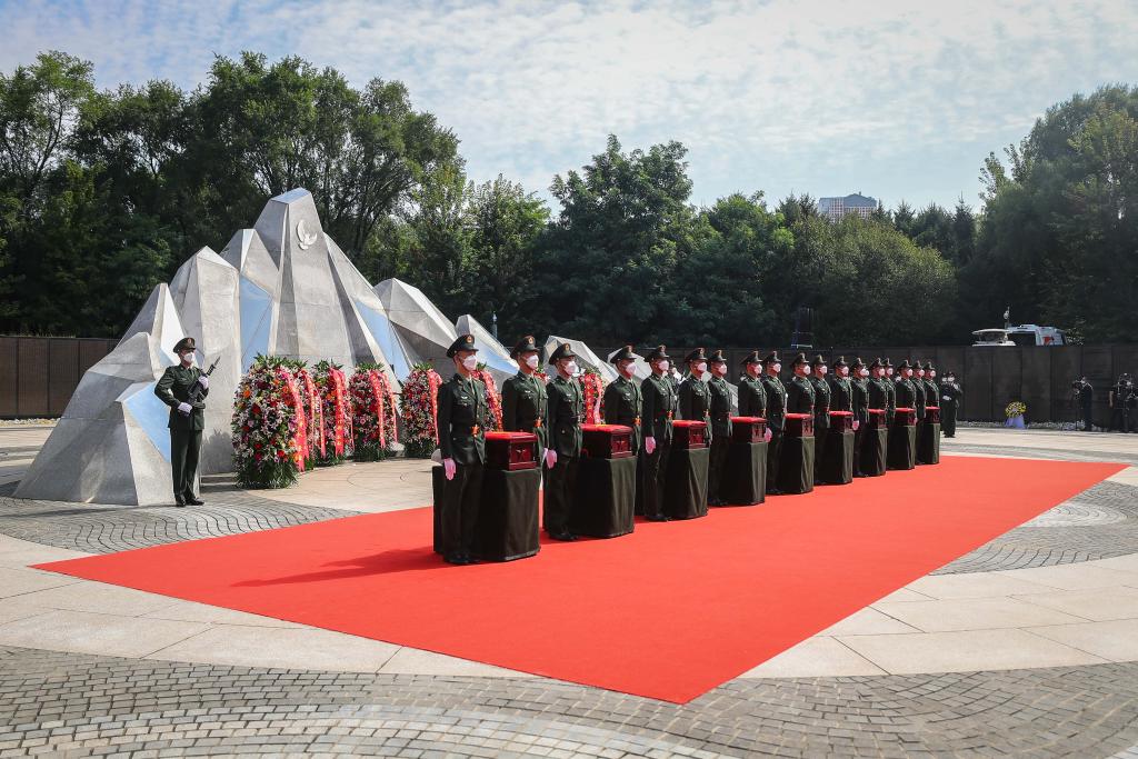 2022年9月17日,第九批在韓中國人民志愿軍烈士遺骸安葬儀式現(xiàn)場。