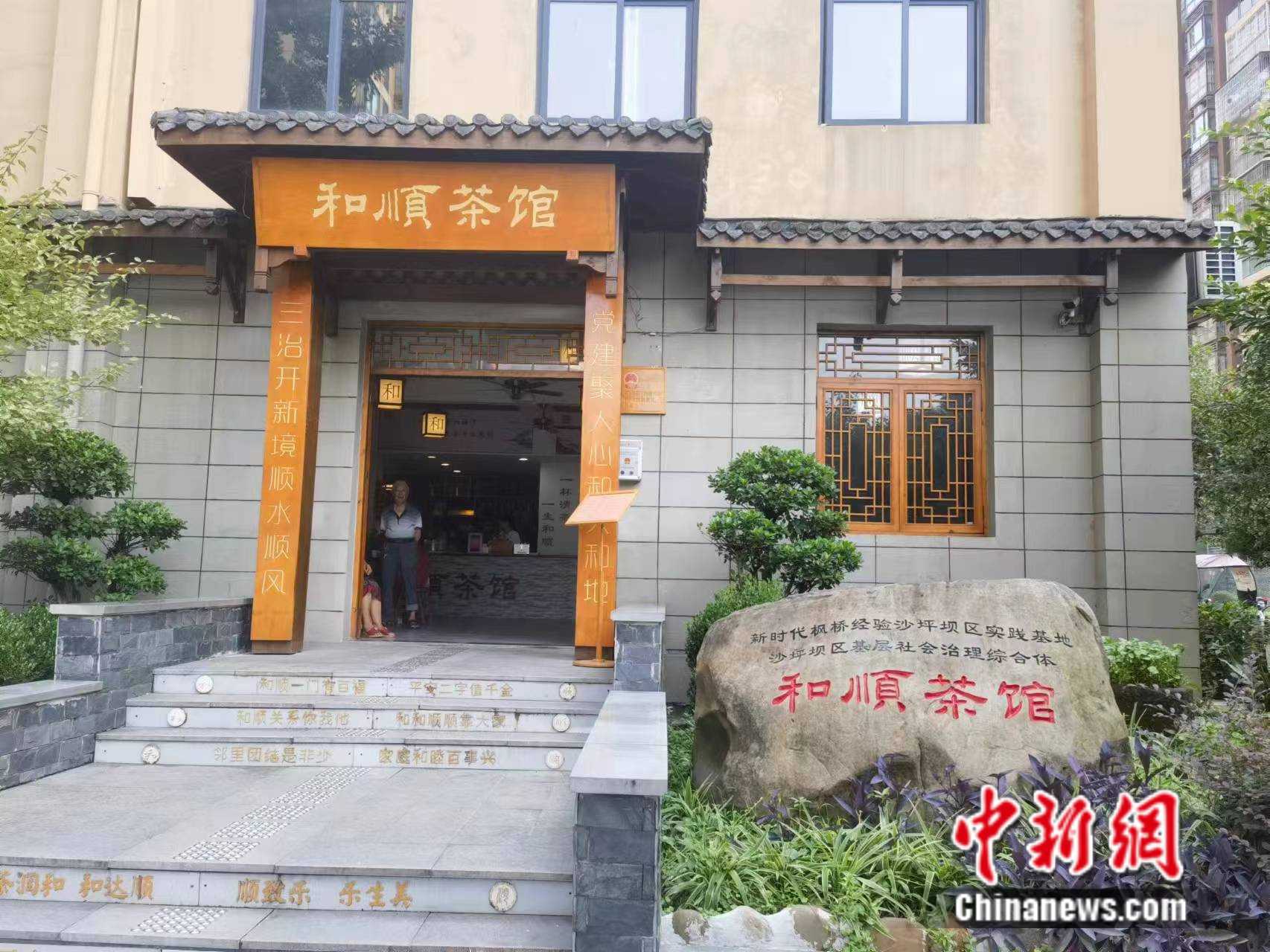 茶館在川渝地區(qū)是常見的休閑去處,在重慶市沙坪壩區(qū)回龍壩鎮(zhèn)聚龍城社區(qū),一間非民辦“和順茶館”成為當?shù)乩习傩盏拿咳沾蚩ǖ兀撼撕炔枇奶?,茶館還融合了各職能部門下沉社區(qū)的十幾個辦公室功能。政策宣講、糾紛調(diào)解、法律咨詢……一杯清茶間,社區(qū)里那些難辦、急辦的事總能得到妥善解決。