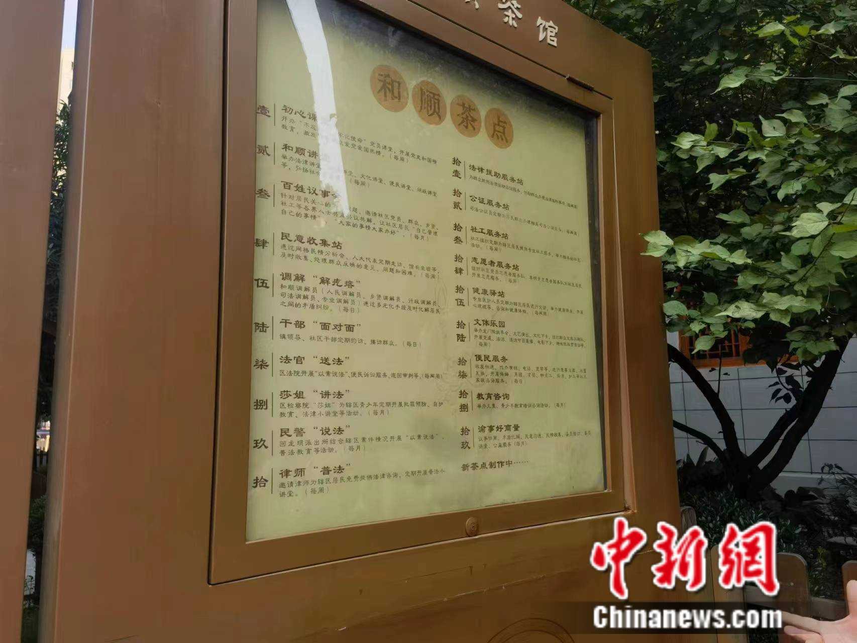 “在基層治理的路途中,法治是最后的防線?!辈桊^負責人說,“和順茶館”為基層法治提供了一個強有力的平臺,聚合公檢法司等法治力量下沉社區(qū),從組建法治隊伍、提供法治“茶點”、設立巡回法庭等多方面讓基層社會治理的執(zhí)行力更強,為居民提供“一站式”化解矛盾糾紛的服務,享受專業(yè)的法律調(diào)解、法律咨詢。