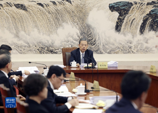 12月18日上午,十四屆全國人大常委會第十六次委員長會議在北京人民大會堂舉行。趙樂際委員長主持會議。新華社記者 劉衛(wèi)兵 攝