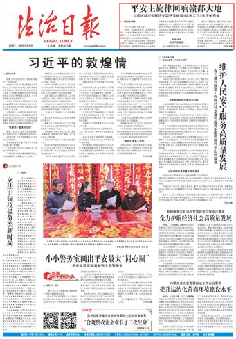 法治,是平安建設的“定盤星”。江西堅持以法治思維和法治方式推進平安建設,先后頒布實施《江西省平安建設條例》《江西省矛盾糾紛多元化解條例》《江西省醫(yī)療糾紛預防與處理條例》等法律法規(guī),在法治軌道上建設更高水平的平安江西。