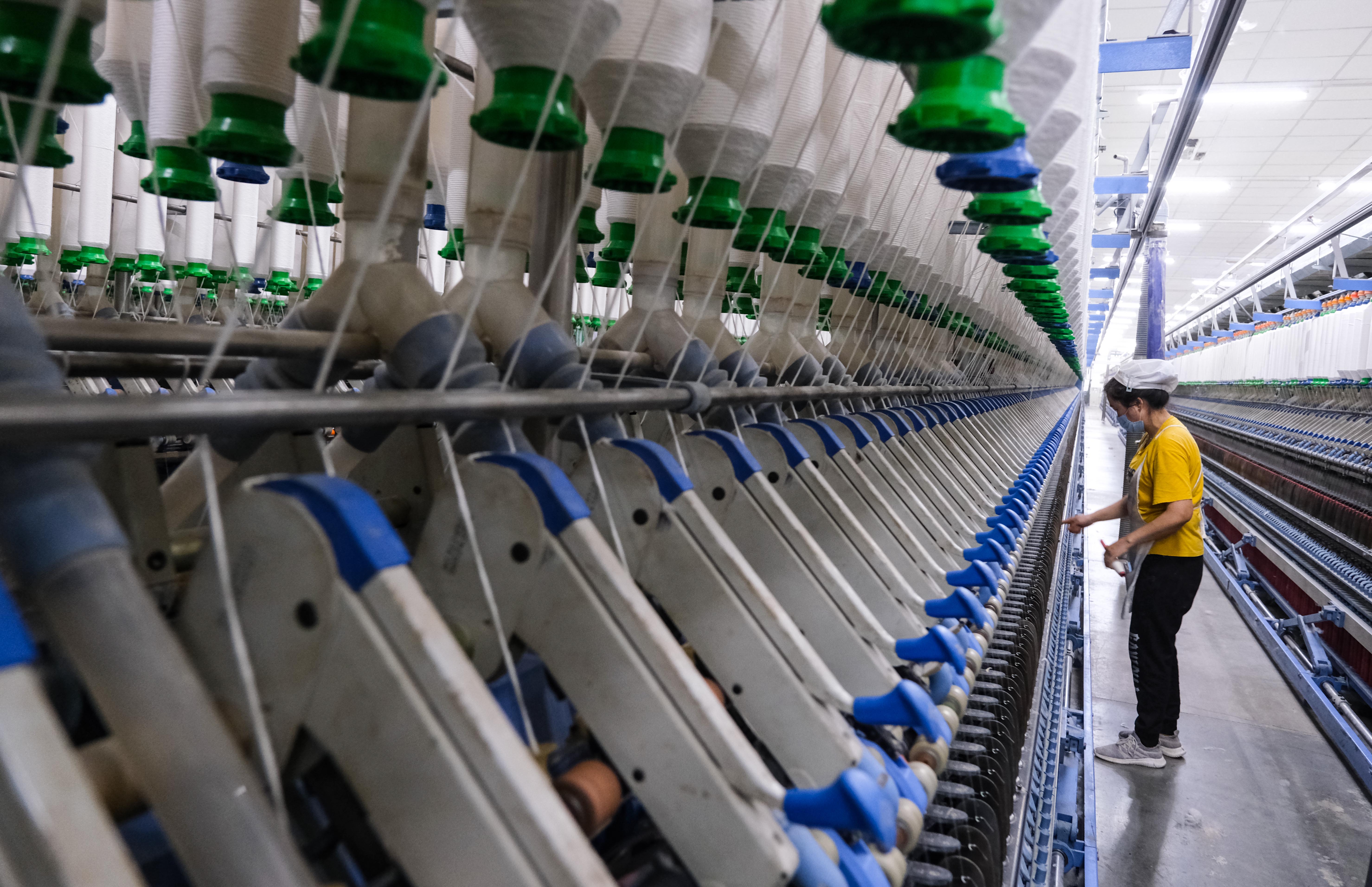 華芳(五河)紡織有限公司是五河縣經(jīng)濟(jì)開發(fā)區(qū)城南工業(yè)園棉紡產(chǎn)業(yè)集群的支柱企業(yè)。圖為現(xiàn)代化生產(chǎn)車間。