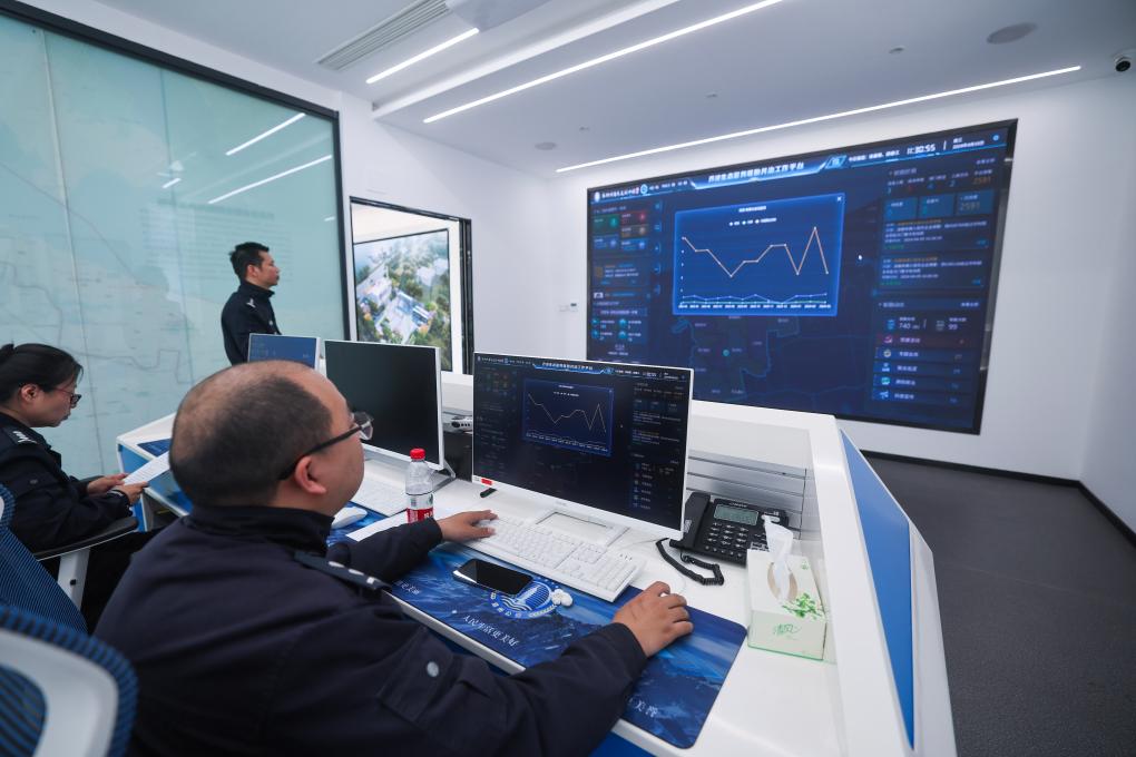 在位于浙江湖州的喬溇生態(tài)警務聯(lián)勤共治工作站里,值班民警通過智能化監(jiān)控平臺對太湖水質(zhì)環(huán)境進行實時監(jiān)測。新華社記者徐昱 攝
