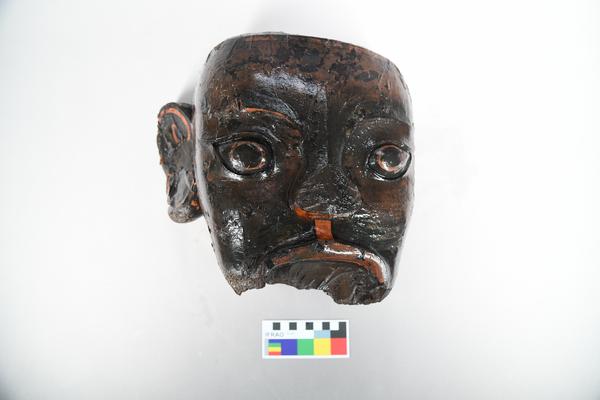 這是武王墩墓出土的木俑首(2024年4月2日攝)。新華社發(fā)