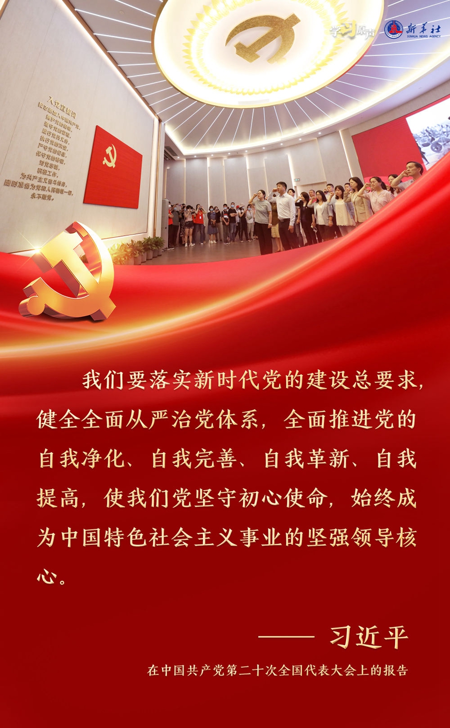 習(xí)近平總書記強(qiáng)調(diào),面對新征程上的新挑戰(zhàn)新考驗(yàn),我們必須高度警省,永遠(yuǎn)保持趕考的清醒和謹(jǐn)慎,馳而不息推進(jìn)全面從嚴(yán)治黨,使百年大黨在自我革命中不斷煥發(fā)蓬勃生機(jī),始終成為中國人民最可靠、最堅(jiān)強(qiáng)的主心骨。