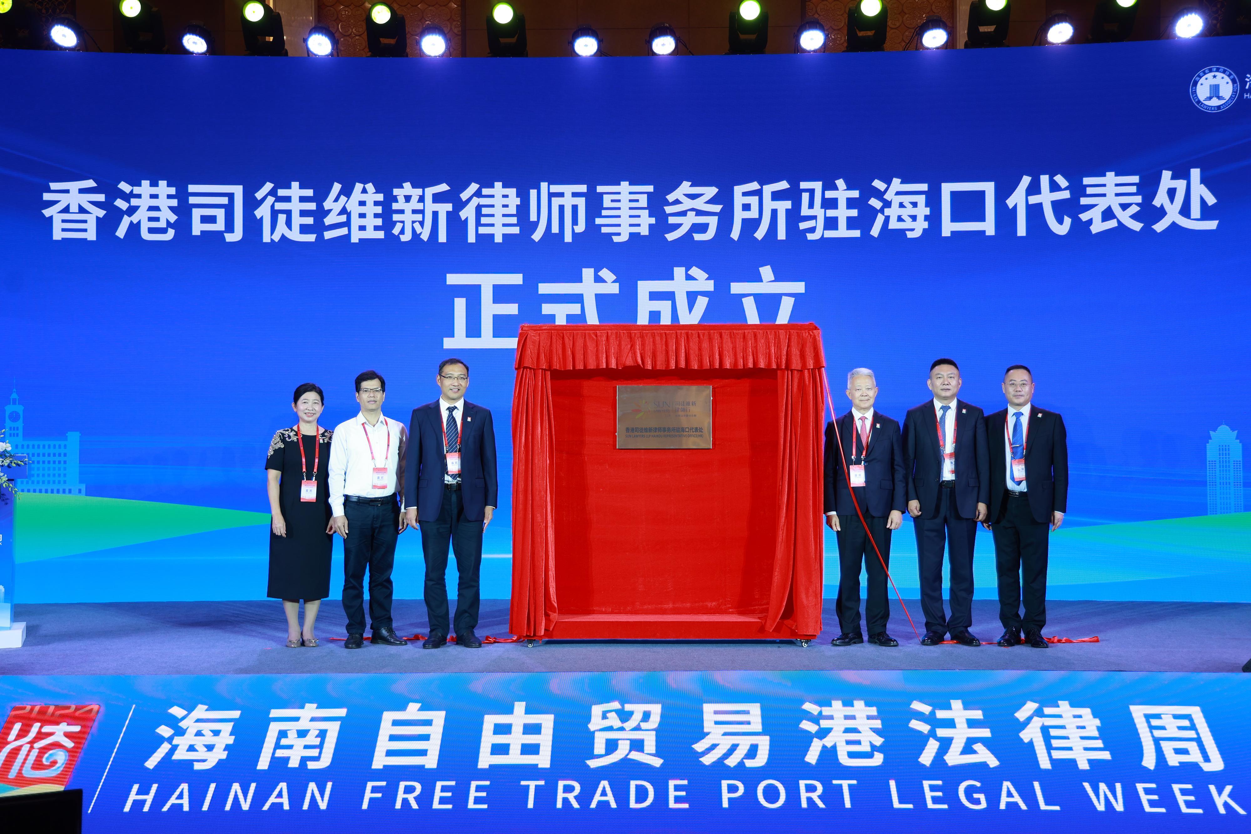 10月17日上午,2024海南自由貿(mào)易港法律周開(kāi)幕式后,香港司徒維新律師事務(wù)所駐??诖硖幵诤?诮遗瞥闪?。
