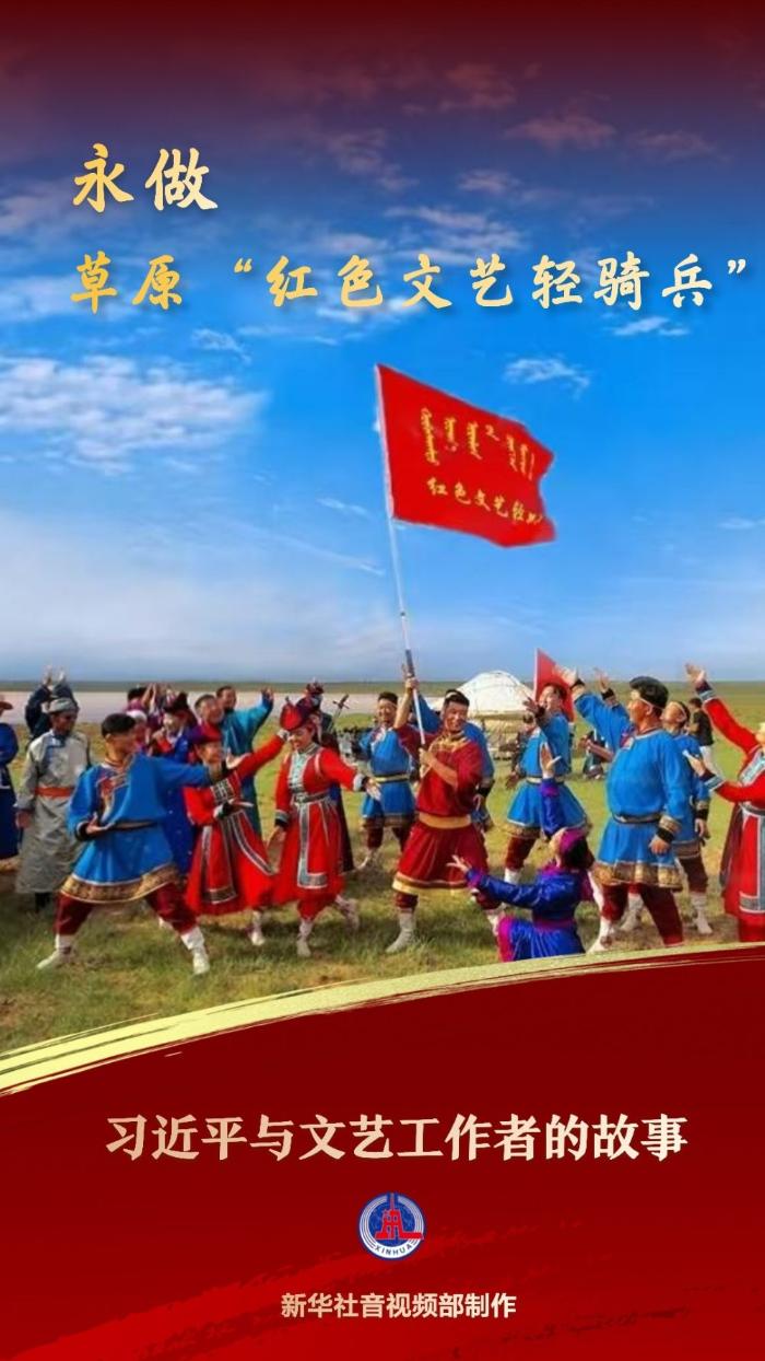 2017年,蘇尼特右旗烏蘭牧騎的16名隊(duì)員給習(xí)近平總書記寫信,匯報烏蘭牧騎60年來的發(fā)展情況,表達(dá)為繁榮發(fā)展社會主義文藝事業(yè)作貢獻(xiàn)的決心。當(dāng)年,總書記回信勉勵他們大力弘揚(yáng)烏蘭牧騎優(yōu)良傳統(tǒng),永遠(yuǎn)做草原上的“紅色文藝輕騎兵”。