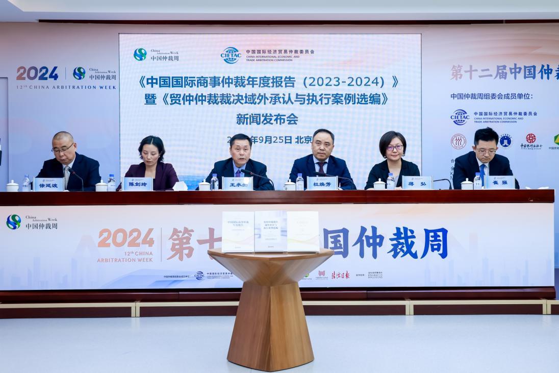 2024年9月25日,中國國際經(jīng)濟(jì)貿(mào)易仲裁委員會(以下簡稱“貿(mào)仲”)在北京召開新聞發(fā)布會,貿(mào)仲副主任兼秘書長王承杰在會上發(fā)布《中國國際商事仲裁年度報(bào)告(2023-2024)》(以下簡稱《2023-2024年度報(bào)告》)和《貿(mào)仲仲裁裁決域外承認(rèn)與執(zhí)行案例選編》(以下簡稱《執(zhí)行案例選編》)。貿(mào)仲黨委書記兼副秘書長徐延波主持發(fā)布會。