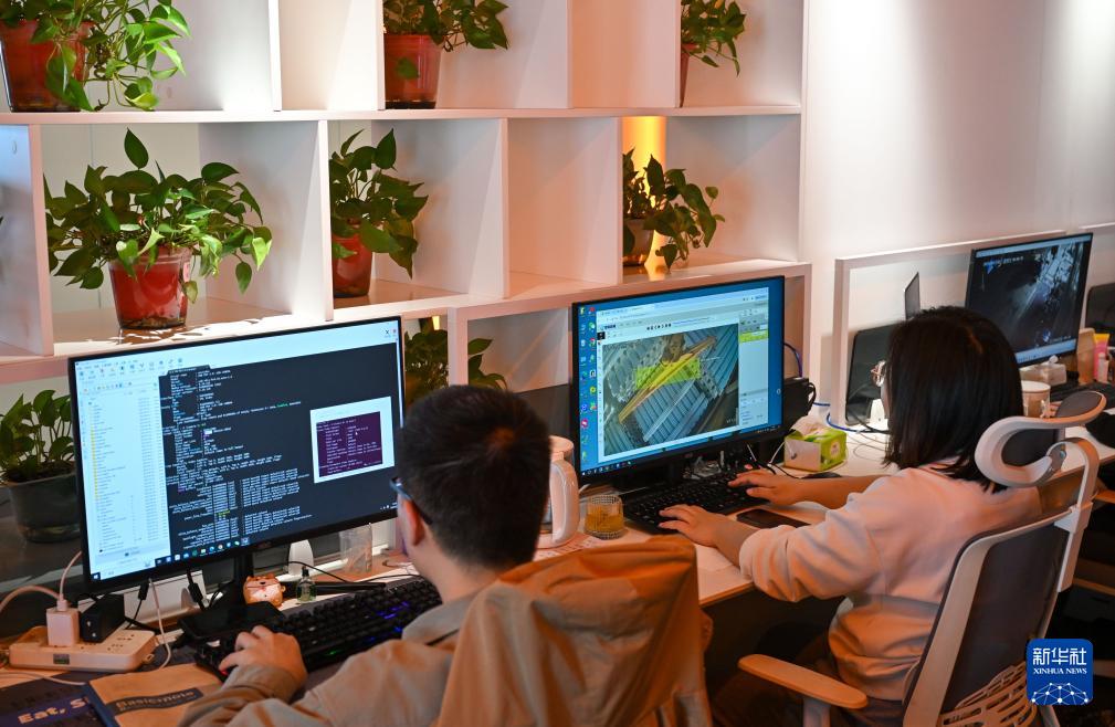 在德龍軟件科技(天津)有限公司,工作人員在對(duì)工業(yè)類軟件進(jìn)行開發(fā)運(yùn)維(4月18日攝)。