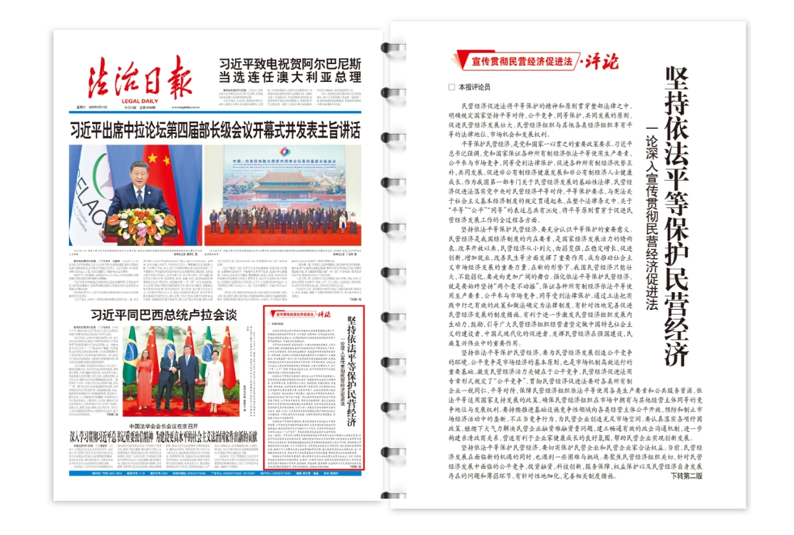 平等保護民營經濟,是黨和國家一以貫之的重要政策要求。習近平總書記強調,黨和國家保證各種所有制經濟依法平等使用生產要素、公平參與市場競爭、同等受到法律保護,促進各種所有制經濟優(yōu)勢互補、共同發(fā)展,促進非公有制經濟健康發(fā)展和非公有制經濟人士健康成長。作為我國第一部專門關于民營經濟發(fā)展的基礎性法律,民營經濟促進法落實黨中央對民營經濟平等對待、平等保護要求,與憲法關于社會主義基本經濟制度的規(guī)定貫通起來,在整個法律條文中,關于“平等”“公平”“同等”的表述總共有26處,將平等原則貫穿于促進民營經濟發(fā)展工作的全過程各方面。