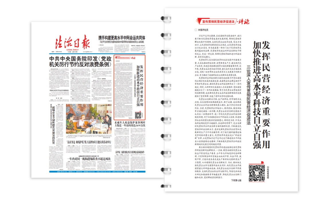 民營(yíng)企業(yè)創(chuàng)新活力強(qiáng)、生產(chǎn)效率高、對(duì)市場(chǎng)需求反應(yīng)快,往往能夠積極擁抱新技術(shù)、敢于試錯(cuò)。這些都是民營(yíng)企業(yè)在科技創(chuàng)新領(lǐng)域勇立潮頭、奮力爭(zhēng)先的優(yōu)勢(shì)所在。當(dāng)前,民營(yíng)經(jīng)濟(jì)在市場(chǎng)準(zhǔn)入、要素獲取、服務(wù)供給等方面還面臨一些問題,民營(yíng)企業(yè)自身創(chuàng)新發(fā)展能力也存在一些薄弱環(huán)節(jié)。進(jìn)一步優(yōu)化民營(yíng)企業(yè)科技創(chuàng)新制度環(huán)境,對(duì)于加快推進(jìn)高水平科技自立自強(qiáng)、促進(jìn)經(jīng)濟(jì)社會(huì)高質(zhì)量發(fā)展具有重要意義。特別是當(dāng)前,中美在高科技領(lǐng)域競(jìng)爭(zhēng)日趨激烈,在這樣的背景下,充分發(fā)揮好民營(yíng)經(jīng)濟(jì)在科技創(chuàng)新方面的獨(dú)特優(yōu)勢(shì),不斷激發(fā)民營(yíng)經(jīng)濟(jì)科技創(chuàng)新活力,更好發(fā)揮民營(yíng)經(jīng)濟(jì)在培育和發(fā)展新質(zhì)生產(chǎn)力中的關(guān)鍵作用,對(duì)于我們最終贏得這場(chǎng)競(jìng)爭(zhēng)的勝利意義重大。民營(yíng)經(jīng)濟(jì)促進(jìn)法設(shè)立“科技創(chuàng)新”專章,正是貫徹習(xí)近平總書記關(guān)于推進(jìn)高水平科技自立自強(qiáng)重要論述精神、不斷拓展民營(yíng)經(jīng)濟(jì)在科技創(chuàng)新領(lǐng)域的發(fā)展空間的制度考量。