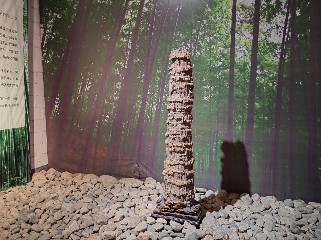 在原木標(biāo)本展廳,一塊跨越萬(wàn)年時(shí)光的竹化石靜靜陳列。燈光下,竹竿依舊挺拔,竹節(jié)棱角分明,葉片脈絡(luò)甚至細(xì)胞纖維都清晰可辨。“這些木頭會(huì)說(shuō)話,它們?cè)谥v述地球的故事?!苯_(kāi)峰說(shuō)。