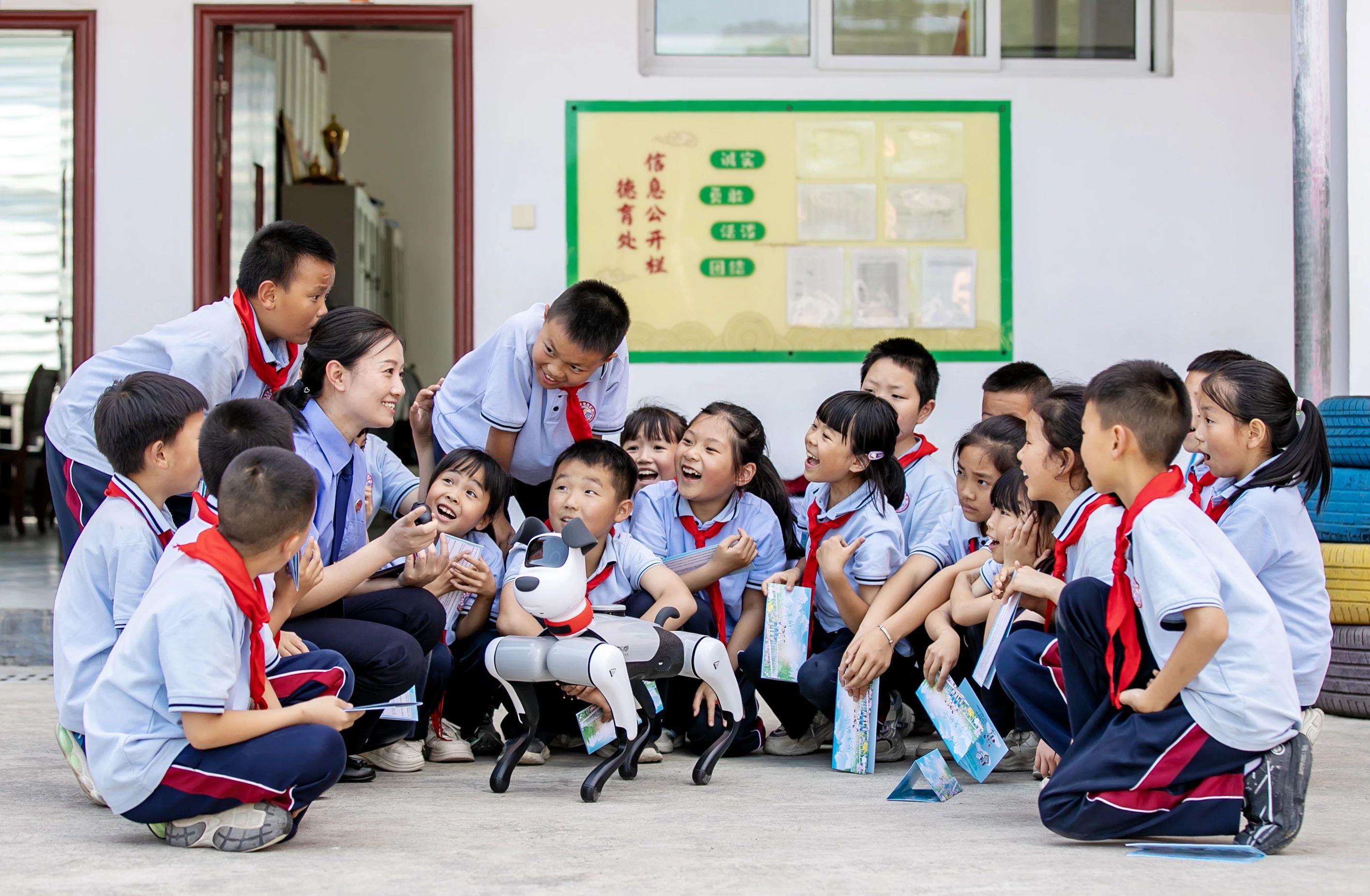 圖為檢察干警在惠風(fēng)學(xué)校利用智能機器狗“妞妞”給學(xué)生宣講未成年人保護法。