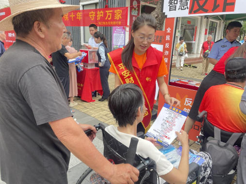 活動(dòng)當(dāng)天,現(xiàn)場(chǎng)洋溢著熱烈的紅色氛圍,精彩的文藝表演輪番上演,吸引了眾多居民駐足觀看。平安產(chǎn)險(xiǎn)海南分公司與平安銀行??诜中械闹驹感麄魅藛T在活動(dòng)現(xiàn)場(chǎng)特別搭建了“智慧反詐 平安守護(hù)”宣傳展臺(tái),通過擺放反欺詐、防范非法集資等宣傳折頁,向過往群眾普及金融安全知識(shí)?;顒?dòng)還邀請(qǐng)到了轄區(qū)民警,為老年人講解防范詐騙的實(shí)用技巧,幫助他們提高警惕,遠(yuǎn)離詐騙風(fēng)險(xiǎn)。