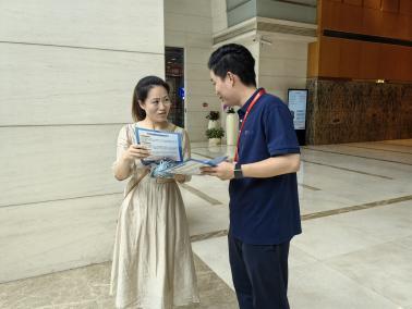 保險進(jìn)企業(yè):走進(jìn)企業(yè)大樓,為大樓內(nèi)來往企業(yè)員工介紹“7.8全國公眾保險宣傳日”活動,科普金融反詐知識,提醒大家關(guān)注好自身權(quán)益,避免網(wǎng)絡(luò)電信詐騙。