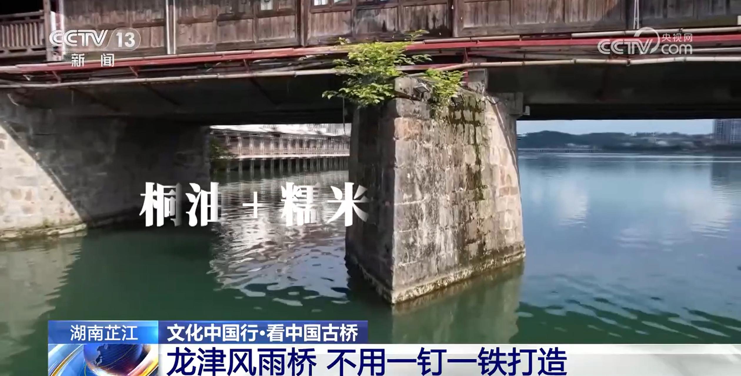 跟隨無人機(jī)的視角穿過湖南芷江,龍津風(fēng)雨橋如一條巨龍橫跨?水河,它全長246.7米、寬12.2米。這座風(fēng)雨橋橋墩形似“龍口噴津”,龍津橋因此而得名。龍津橋上,三重檐的廊道與五重檐的亭閣錯落有致,深藍(lán)色琉璃瓦與白色檐口相映成趣。