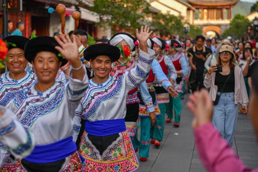 彝族打歌憑借其鮮明的觀賞性與互動性,成為巍山文旅的新亮點(diǎn),不僅帶動當(dāng)?shù)亟?jīng)濟(jì)發(fā)展,也為民間打歌隊(duì)帶來了收入,讓傳承得以延續(xù)。