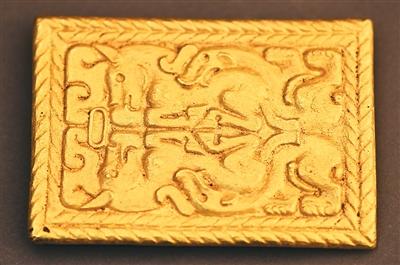 戰(zhàn)國(guó)時(shí)期虎馬咬斗紋金飾牌。 內(nèi)蒙古文物考古研究院供圖