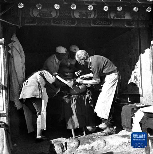 ??當(dāng)白求恩彎著腰,聚精會神地為一名重傷戰(zhàn)士做縫合手術(shù)時,吳印咸舉起照相機,將白求恩救死扶傷、忘我工作的形象永遠(yuǎn)定格在中國人民心中。