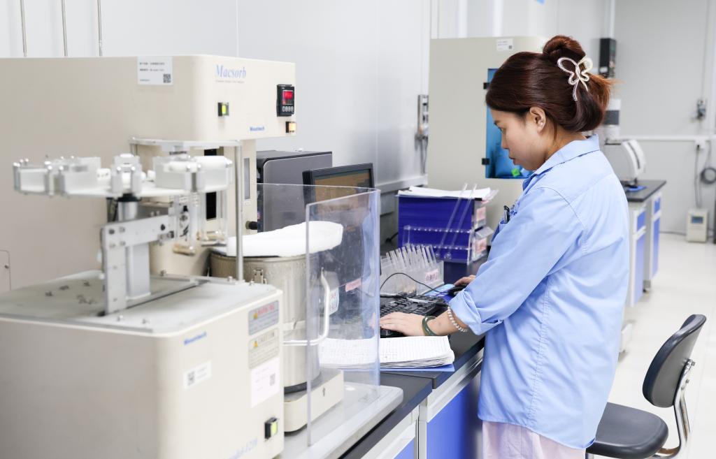研發(fā)人員在三環(huán)集團潮州廠區(qū)的測試分析中心工作(2025年5月28日攝)。新華社記者 毛思倩 攝
