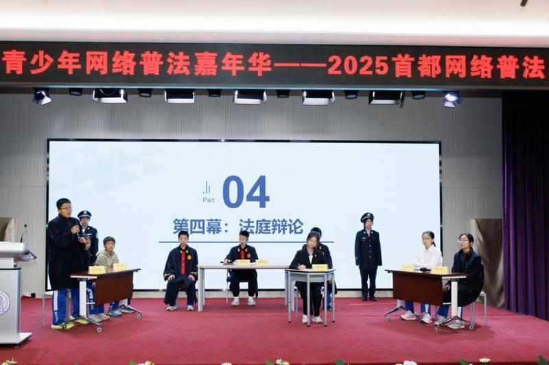 在大興,一場(chǎng)面向青少年的“e法興未來(lái)”普法嘉年華,實(shí)現(xiàn)了網(wǎng)絡(luò)普法和寓教于樂(lè)的雙向奔赴。來(lái)自清華附中大興學(xué)校的初中生們自導(dǎo)自演舞臺(tái)劇,生動(dòng)演繹了因AI換臉險(xiǎn)些被騙、微信群謠言困擾等青少年可能遭遇的網(wǎng)絡(luò)風(fēng)險(xiǎn)。通過(guò)這種直觀的方式,有效提升了學(xué)生們的風(fēng)險(xiǎn)識(shí)別能力和依法上網(wǎng)意識(shí)。