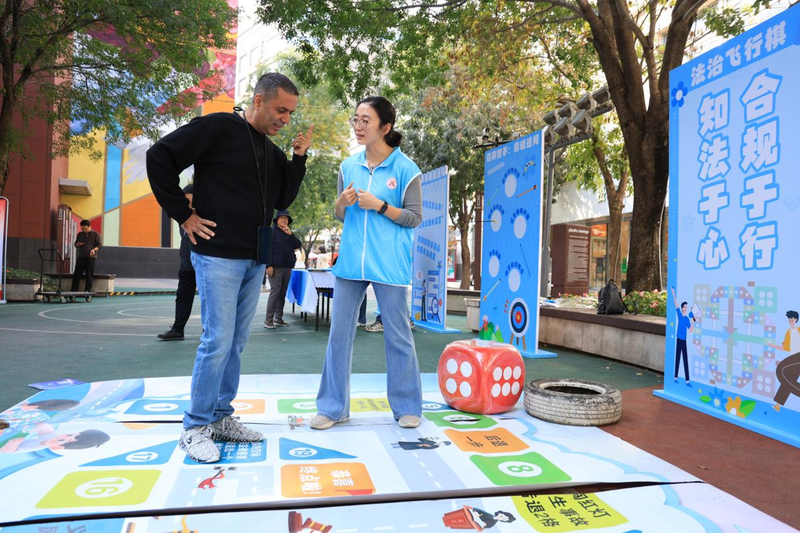 外籍居民參與“法治飛行棋”互動(dòng)。王遠(yuǎn)征 攝