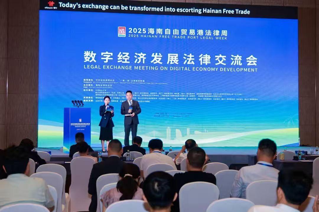 10月17日,2025海南自由貿(mào)易港法律周重要活動之“數(shù)字經(jīng)濟發(fā)展法律交流會”在??谂e行。本次交流會聚焦數(shù)字經(jīng)濟浪潮下的法治保障議題,匯聚了學(xué)術(shù)界、法律實務(wù)界與國際相關(guān)領(lǐng)域?qū)<遥瑥娜蛞曇暗降胤綄嵺`,從技術(shù)賦能到法治保障,共同為海南自貿(mào)港數(shù)字經(jīng)濟的創(chuàng)新發(fā)展建言獻策。