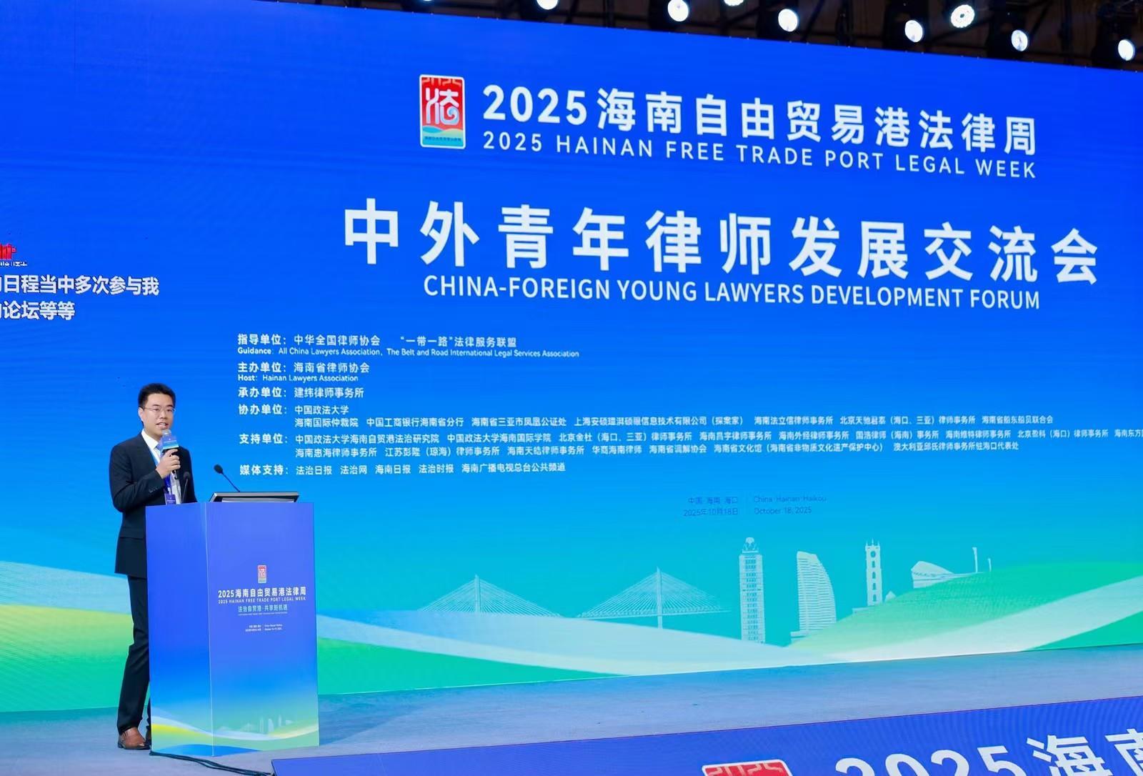 10月18日下午,“2025海南自由貿(mào)易港法律周”主體活動(dòng)之一的中外青年律師交流會(huì)順利舉辦。此次交流會(huì)匯聚了來自法律服務(wù)、法律研究等多領(lǐng)域的專家學(xué)者,深入探討在新時(shí)代浪潮下,青年律師如何以敏銳視角捕捉時(shí)代機(jī)遇,以專業(yè)深耕夯實(shí)成長根基,在時(shí)代與行業(yè)的雙向奔赴中實(shí)現(xiàn)自我進(jìn)階與價(jià)值躍升。