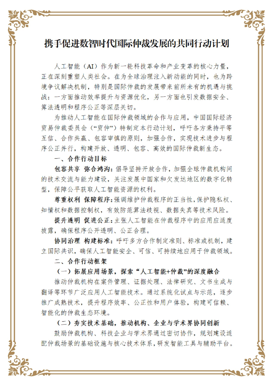 附:《攜手促進(jìn)數(shù)智時(shí)代國(guó)際仲裁發(fā)展的共同行動(dòng)計(jì)劃》中英文文本
