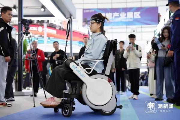 “3、2、1,開(kāi)打!”一場(chǎng)具身機(jī)器人搏擊賽激情上演,兩個(gè)戴著拳擊手套的機(jī)器人相對(duì)而立,一方迅捷左勾拳,另一方靈活回旋踢,金屬碰撞聲與陣陣驚呼喝彩聲交織;不遠(yuǎn)處,兩臺(tái)腦控輪椅同樣被圍得水泄不通,使用者無(wú)需手柄和人力輔助,僅憑“意念”便能掌控輪椅自如前行……