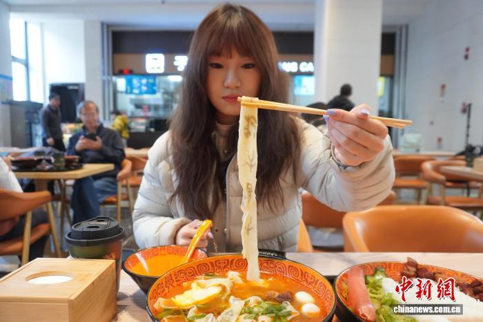 中新社河南安陽(yáng)12月11日電 題:“甲骨文面條”走紅 游客吃面“沾福氣”