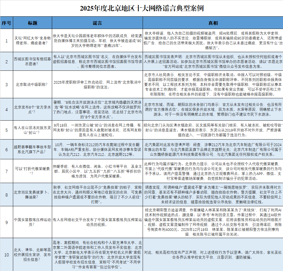 警示!2025年度北京十大網(wǎng)絡謠言典型案例全拆解