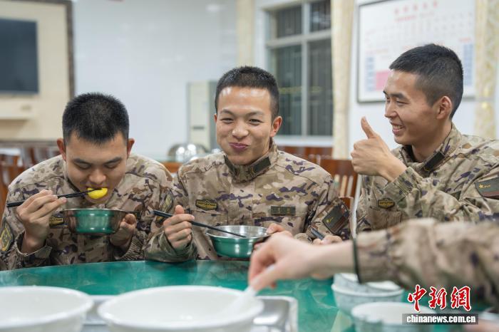 圖為武警官兵品嘗湯圓。施晨洲 攝