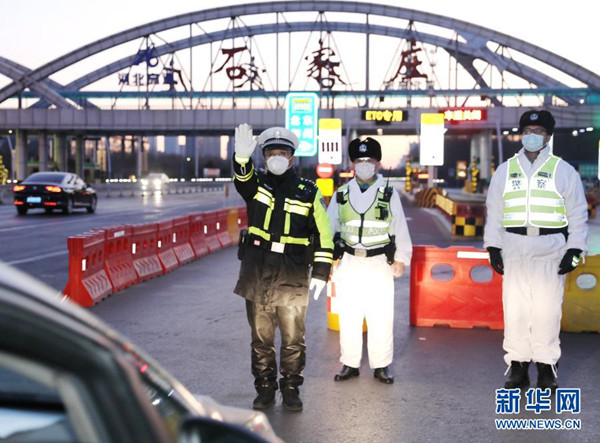 1月10日,石家莊市公安局高新技術(shù)產(chǎn)業(yè)開發(fā)區(qū)公安分局民警在藁城區(qū)通往市區(qū)的路口執(zhí)勤。