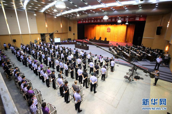 山西省忻州市中級人民法院依法公開開庭審理被告人朱強等59人涉嫌黑社會性質(zhì)組織一案(2019年6月24日攝)。新華社發(fā)