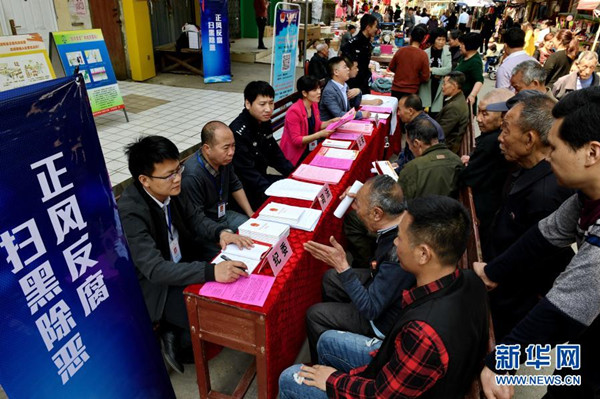 2018年4月1日,福建省建甌市接訪工作人員在小橋鎮(zhèn)墟日上接受群眾來訪。建甌市紀委在反腐“拍蠅”和掃黑除惡專項斗爭中,將治理黨員干部涉黑涉惡問題作為整治群眾身邊腐敗問題的重要工作,通過專項巡察和下鄉(xiāng)接訪等方式廣泛聽取群眾意見,收集問題線索,推進全面從嚴治黨向基層延伸。新華社記者張國俊攝