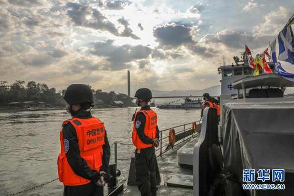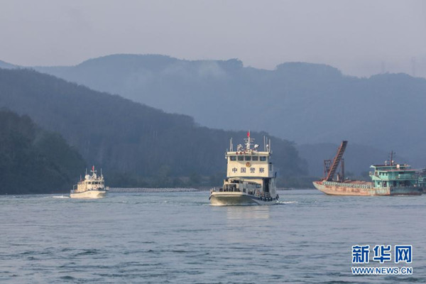 2月23日,第102次中老緬泰湄公河聯(lián)合巡邏執(zhí)法編隊(duì)啟航,中方執(zhí)法艇編隊(duì)巡航經(jīng)過(guò)瀾滄江景哈水域?! ⌒氯A社發(fā)(張壽晨 攝)