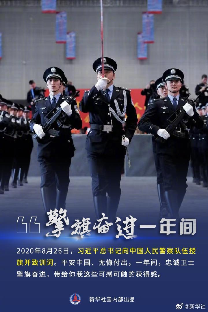 2020年8月26日,習(xí)近平總書記向中國人民警察隊伍授旗并致訓(xùn)詞。平安中國,無悔付出。一年來,全國公安機(jī)關(guān)的忠誠衛(wèi)士擎旗前進(jìn),在增強(qiáng)人民群眾獲得感、幸福感、安全感的道路上取得了哪些新成績?