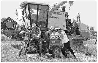 為保障“三夏”期間轄區(qū)道路交通安全暢通,陜西省渭南市澄城縣交警大隊(duì)來到田間地頭以及公路沿線村莊,加大對(duì)交通安全知識(shí)的宣傳力度,同時(shí)幫助孤寡老人、貧困戶搶收小麥,全力守護(hù)群眾的“糧袋子”。圖為民警協(xié)助村民搶收小麥。