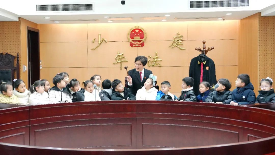 近日,江蘇省徐州市中級人民法院舉辦“憲法宣傳周法院開放日”主題活動,100余名泉山區(qū)教工幼兒園師生走進(jìn)法院,“零距離”體驗(yàn)法院工作,感受法律魅力。圖為法官向小朋友講解法徽、法槌的象征和意義。