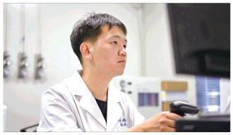 圖為陳少峻在理化實驗室做物證檢驗分析。 海東市公安局供圖