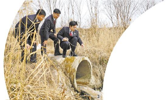 圖③ 2025年2月,陜西省關(guān)中平原地區(qū)人民檢察院公益訴訟辦案人員在排污口取證。