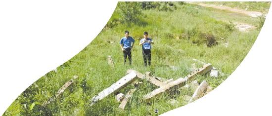 圖② 2025年8月29日,陜西省陜北高原地區(qū)人民檢察院公益訴訟辦案人員對(duì)鐵路橋下拋撒軌枕現(xiàn)場(chǎng)勘查。