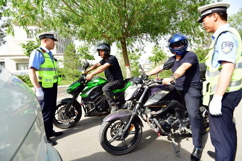 連日來,甘肅省臨澤縣公安局交警大隊開展打擊整治“飆車炸街”違法犯罪專項行動,切實維護道路交通秩序和公共安全。圖為6月6日,交警正在嚴查道路“飆車炸街”違法行為。通訊員 安學海 攝