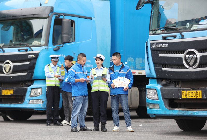 圖為民警向快遞貨運司機宣講交通法律法規(guī)