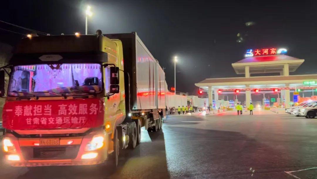 12月21日凌晨,省交通運輸廳連夜規(guī)劃運輸路線、組織護送隊伍、制定轉(zhuǎn)運方案,迅速調(diào)配蘭州、白銀、蘭州新區(qū)等交通運輸企業(yè),調(diào)集半掛貨車分區(qū)域在蘭州集結(jié)待命,為物資大量轉(zhuǎn)運做好準備,統(tǒng)籌推進災(zāi)區(qū)急需的活動板房以最快速度運抵。