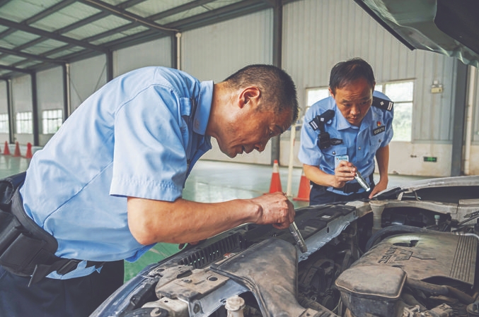 6月19日,陜西省西安市公安局交警支隊(duì)車輛管理所東區(qū)分所民警冒著高溫,在查驗(yàn)通道查驗(yàn)車輛,從嚴(yán)把好車輛檢驗(yàn)關(guān)。