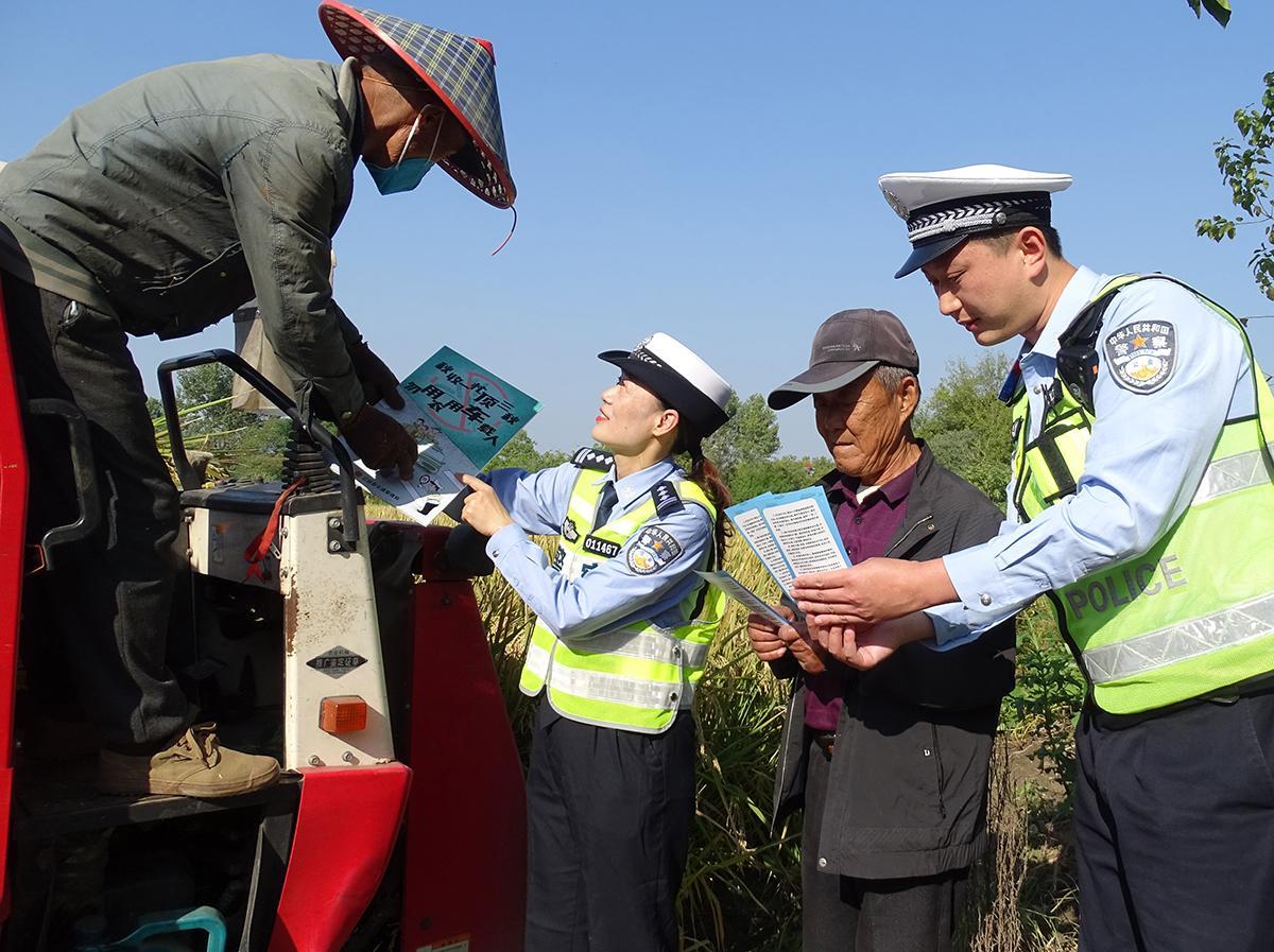 10月9日,安徽省蕪湖市公安局交警支隊(duì)鏡湖大隊(duì)抓住農(nóng)村秋收季節(jié)特點(diǎn),組織民警走進(jìn)轄區(qū)田間地頭開展交通法規(guī)宣傳,提高群眾的交通安全意識(shí)。