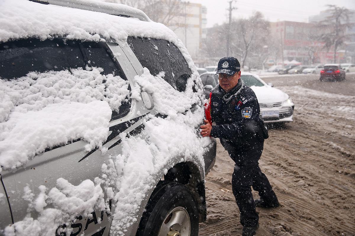 3月2日,受寒潮影響,山東省濟南市出現大風降溫雨雪天氣。濟南市公安局市中區(qū)分局立即啟動惡劣天氣應急預案,組織警力在重點路段、十字路口執(zhí)勤巡邏,為市民提供服務,確保群眾出行安全。