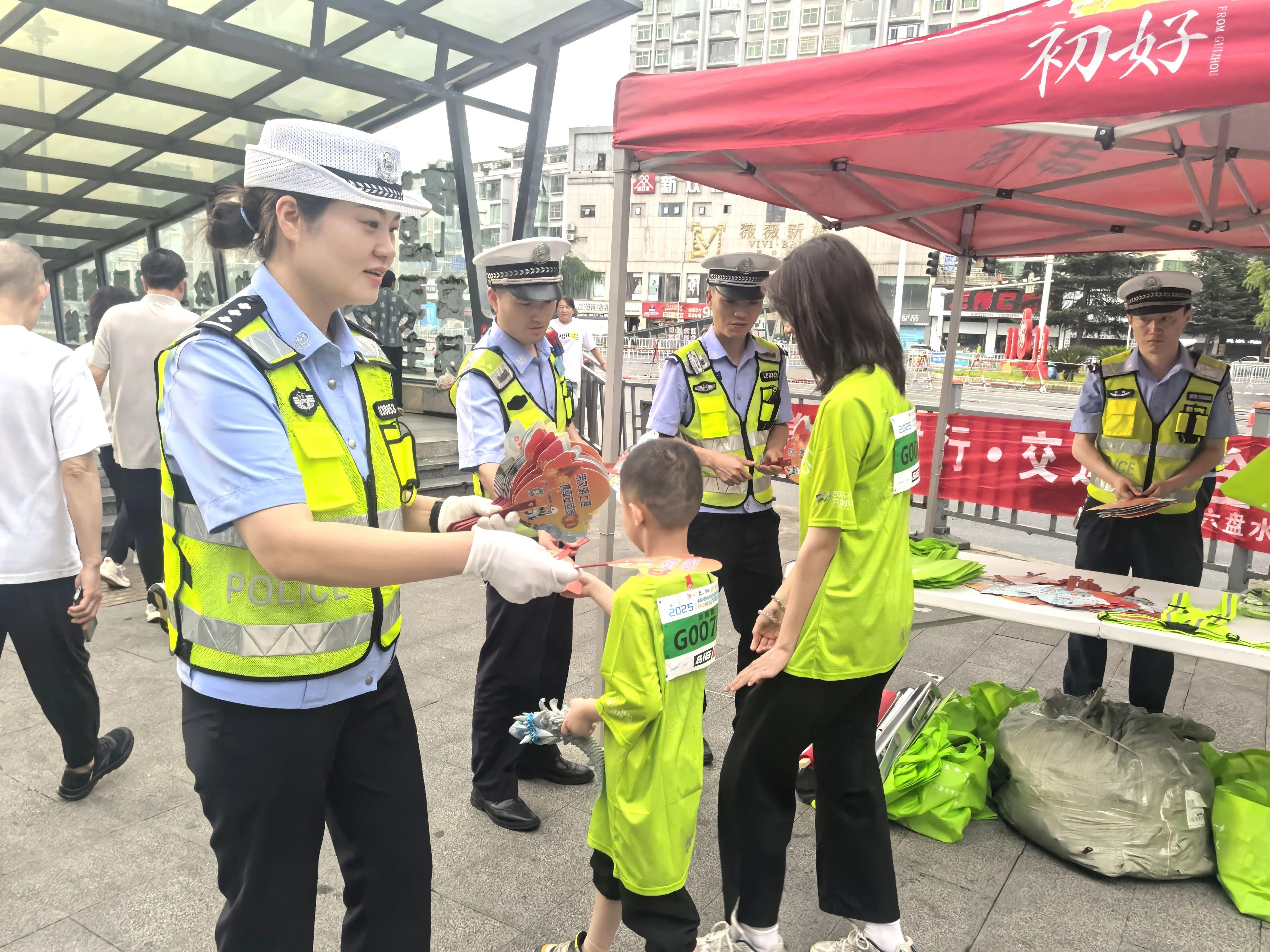 “被看見(jiàn)才安全”——暖心發(fā)放反光安全帶針對(duì)參賽者的特點(diǎn),六盤水交警創(chuàng)新服務(wù)舉措,在活動(dòng)現(xiàn)場(chǎng)設(shè)置宣傳服務(wù)臺(tái)向游客、群眾免費(fèi)發(fā)放反光安全帶、小扇子,并現(xiàn)場(chǎng)講解夜間出行安全知識(shí),提醒大家“被看見(jiàn)才安全”,有效提升夜間出行安全系數(shù)。